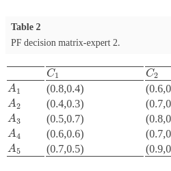 2014) proposed a new extension of a fuzzy set, namely Pythagorean fuzzy set (PFS), which is also represented by the values of membership degree (