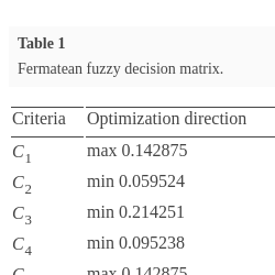 6 describes the concept of weighted product models (WPMs). In next Section, we utilize Fermatean fuzzy weighted product model to solve multi-criteria decision-making problems. Section