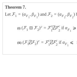 (ii) ${\mathcal{F}_{1}}\cup {\mathcal{F}_{2}}=\big(\max \{{\alpha _{{F_{1}}}},{\alpha _{{F_{2}}}}\},\min \{{\beta _{{F_{1}}}},{\beta _{{F_{2}}}}\}\big)$;
