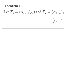 (i) ${\mathcal{F}_{1}}\cap {\mathcal{F}_{2}}=\big(\min \{{\alpha _{{F_{1}}}},{\alpha _{{F_{2}}}}\},\max \{{\beta _{{F_{1}}}},{\beta _{{F_{2}}}}\}\big)$;