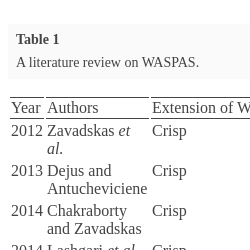 et al. WASPAS is a weighted combination of Weighted Sum Model (WSM) and Weighted Product Model (WPM) (Zavadskas