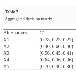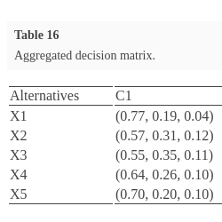 After the weights of the criteria and the rating of the alternatives have been determined, the aggregated weighted intuitionistic fuzzy decision matrices are constructed by utilizing Eqs. (