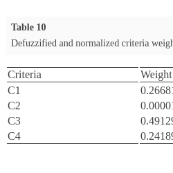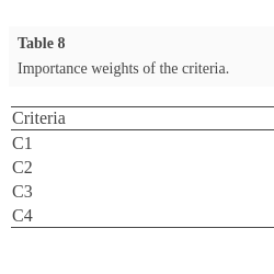 8 are used for this comparison. Opinions of decision makers on criteria are aggregated using IFWA operator and the weight of each criterion is presented in Table