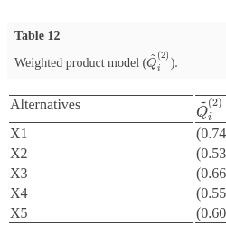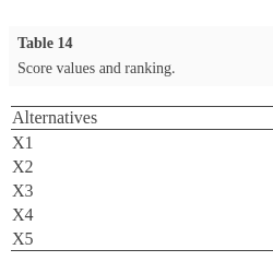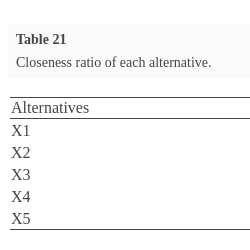 $X1>X3>X2>X5>X4$. Table