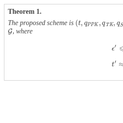 • Partial-Private-Key-Extraction: A KGC produces a partial private key ${\mathsf{PPK}_{\mathit{ID}}}$ on input $\mathsf{SPP}$, $\mathsf{SSK}$ and an identity $\mathit{ID}$.