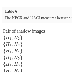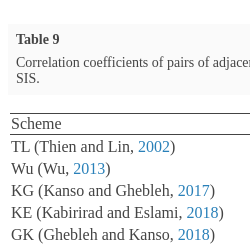 2018) and Pr-SIS. It is evident from this table that all schemes generate shadow images almost free of any correlation between adjacent pixels.