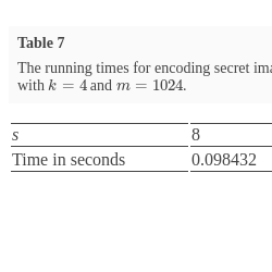 The proposed scheme is very fast provided the admissibility of the transformation matrix is verified beforehand. This step is independent of the secret image and does not present any security risks to the process of secret image sharing. On the other hand, checking admissibility is costly in general and could be considered as a disadvantage of the proposed scheme if it is not performed independently of the secret sharing itself. Processing time and shadow image size can be further reduced if the proposed scheme is used in conjunction with image compression algorithms such as those based on vector quantization.