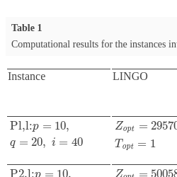 1 shows a comparison of the running times of the proposed algorithm with those obtained by Calvete