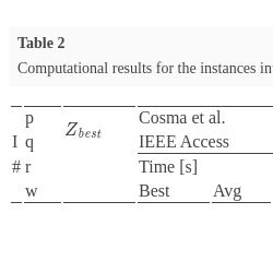 ${Z_{\mathit{best}}}$, the best and the average running time for finding the best solution and the best and the average iteration in which the best solution appears. The next column displays the CPU used in the experiments. The last six columns display the results achieved by the PSDS algorithm: the best and the average running times for obtaining the best solution, the best and the average iteration at which the best solution appears, the average duration of an iteration