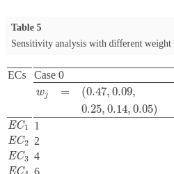 | Experts | CRs | ${\textit{EC}_{1}}$ | ${\textit{EC}_{2}}$ | ${\textit{EC}_{3}}$ | ${\textit{EC}_{4}}$ | ${\textit{EC}_{5}}$ | ${\textit{EC}_{6}}$ |