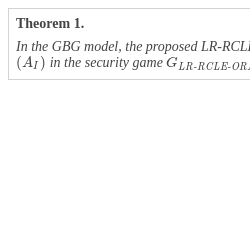 – Guess phase. In this phase, ${A_{I}}$ must output a bit ${b^{\prime }}\in \{0,1\}$. If ${b^{\prime }}=b$, we say that it wins the game ${G_{\textit{LR-RCLE-ORA}}}$ and its advantage is $|\mathrm{Pr}[{b^{\prime }}=b]-1/2|$.