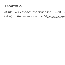 – Guess phase: In this phase, ${A_{\textit{II}}}$ must output a bit ${b^{\prime }}\in \{0,1\}$. If ${b^{\prime }}=b$, we say that it wins the game ${G_{\textit{LR-RCLE-ORA}}}$ and its advantage is $|\Pr [{b^{\prime }}=b]-1/2|$.