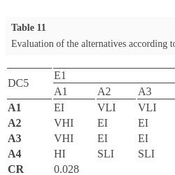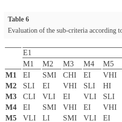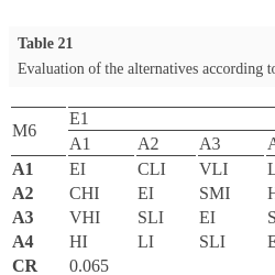 | A1 | EI | CHI | HI | HI | EI | VHI | HI | HI | EI | VHI | HI | HI |