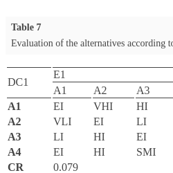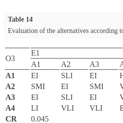 | A3 | HI | EI | EI | HI | VHI | SLI | EI | SMI | SMI | SLI | EI | EI |
