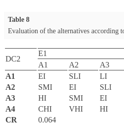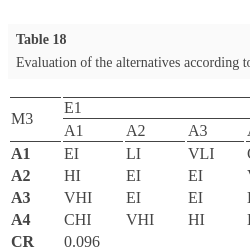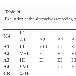 | A3 | VHI | EI | EI | LI | VHI | EI | EI | LI | VHI | SMI | EI | SLI |