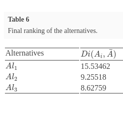 $A{l_{3}}$ is the best alternative. The decision-maker can take one of them according to criteria values.