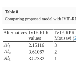 Comparing proposed model with IVIF-RPR method.