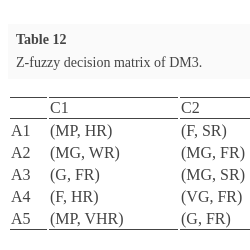 | Z-fuzzy $\widetilde{\textit{SP}}$ values | |