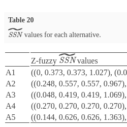 | Z-fuzzy $\widetilde{\textit{SN}}$ values | |