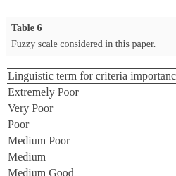 | Linguistic term for criteria importance | Symbol | Triangular fuzzy number |