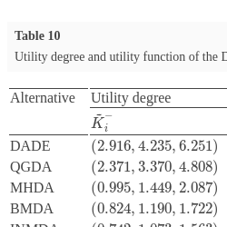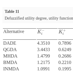 | Alternative | ${K_{i}^{-}}$ | ${K_{i}^{+}}$ | $f({K_{i}^{-}})$ | $f({K_{i}^{+}})$ | $\frac{(1-f({K_{i}^{-}}))}{f({K_{i}^{-}})}$ | $\frac{(1-f({K_{i}^{+}}))}{f({K_{i}^{+}})}$ | $f({K_{i}})$ | Rank |