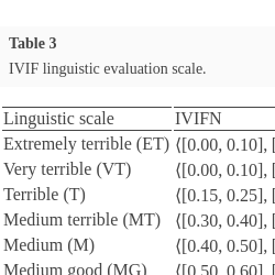 (1) With the increasing complexity of DM problems and the ambiguity of informative data, DEs find it is difficult to accurately quantify their evaluations using single numerals, but their preferences can be expressed more completely in natural language. Linguistic IVIFS theory is one of the most effective generalizations in FS theory, which can describe the assessment information of DEs in even more detail.