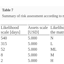 Summary of risk assessment according to matrix, SFIS, PiFIS methods.