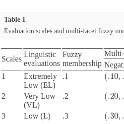 Multi-facet fuzzy sets refer to the new concept for presenting the environmental conditions of the decision making dynamically. These new sets define five functions generated from the membership degree. Primary membership degree (μ) defines the satisfactory value as in Eq. (1) (Rankin et al., 2024).