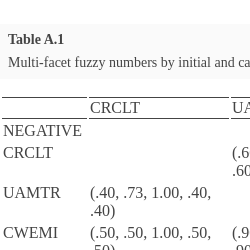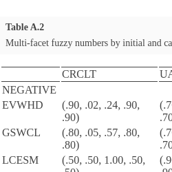 This proposed model integrates different techniques, such as synthetic evaluations, logarithmic least-squares weighting, multi-facet fuzzy sets and WASPAS. The details of these techniques are explained in the following parts.