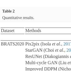 2017) introduced CycleGAN to translate between 2 MRI contrast domains. By employing dual generator and discriminator networks, CycleGAN ensures structural consistency through cycle-consistency loss. Experimental results demonstrate its effectiveness across various image translation tasks. Wei