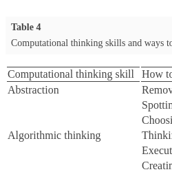 2008) may lead us to think that computational thinking is everywhere and the composite skills all crop up in all tasks. A liberal interpretation such as this may render the computational thinking skill allocation to be meaningless. Computational thinking skills should only be allocated to a task where there is some element of computer science in the task that develops this skill.
