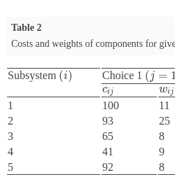 Generally, there are two types of the redundancy allocation problems. In the first type, we deal with discrete component choices with predefined characteristics (reliability, cost, weight, etc.). The aim of solving the problems in this type is choosing the components and the corresponding redundancy levels. In the second type, component reliability or a distribution parameter is treated as a design variable, and component cost is a known increasing function of component reliability (Coit and Liu,