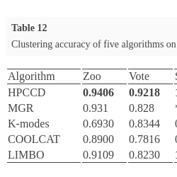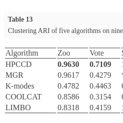 The rest of the paper is organized as follows: Section 2 is a brief review of related work. In Section 3, we introduce the mutual information, total correlation, and holo-entropy concepts used in the paper. Section 4 describes the details of our algorithm HPCCD, with an illustrative example. In Section 5, we present experimental results, in comparison with other state-of-the-art algorithms. Finally, we conclude our paper and suggest future work in Section 6.