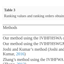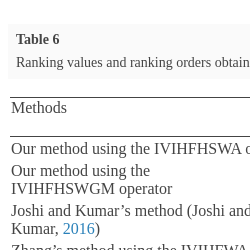 | Our method using the IVIHFHSWA operator | 0.2072 | 0.1075 | 0.2813 | 0.0802 | ${A_{3}}\succ {A_{1}}\succ {A_{2}}\succ {A_{4}}$ |