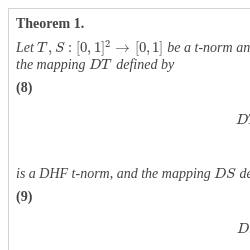 A t-norm T is a mapping from ${[0,1]^{2}}$ to $[0,1]$ possessing the properties of commutativity and associativity, which is increasing in both arguments and refers to 1 as identity, i.e. $T(1,a)=a$ for $a\in [0,1]$.