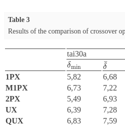 Magalhães-Mendes, J. (2013). A comparative study of crossover operators for genetic algorithms to solve the job shop scheduling problem. WSEAS Transactions on Computers, 12, 164–173.