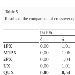 The GA developers are constantly seeking to enhance the performance of GAs. The goal is to create the genetic algorithms that are in competitive advantage with respect to other types of (meta)heuristic optimization algorithms. To achieve this goal, there is a high need in developing and investigating the essential “building components” of the genetic algorithms, among others, the crossover (recombination) operators (Herrera et al., 2003). Despite the significant progress in the design of crossover operators during the last decades, there still is a room for further improvement of this kind of operators (Deep and Thakur, 2007; Maenhout and Vanhoucke, 2008; Abdoun and Abouchabaka, 2011; Kaya, 2011; Magalhães-Mendes, 2013).