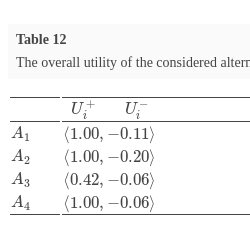In addition, this method does not calculate and does not use the overall significance for ranking alternatives and selecting the most appropriate one. Instead of using an overall parameter for ranking alternatives, the final ranking order of the considered alternatives, as well as the selection of the most appropriate alternative, is based on the use of the theory of dominance.