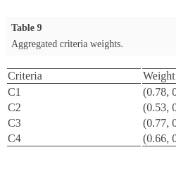 8 are used for this comparison. Opinions of decision makers on criteria are aggregated using IFWA operator and the weight of each criterion is presented in Table