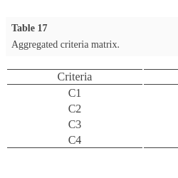 Aggregated criteria matrix.