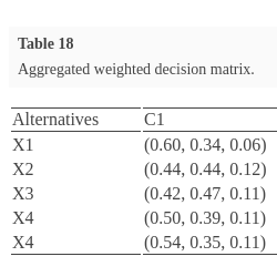 After the weights of the criteria and the rating of the alternatives have been determined, the aggregated weighted intuitionistic fuzzy decision matrices are constructed by utilizing Eqs. (