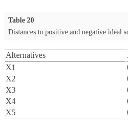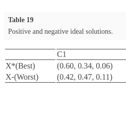 Positive and negative ideal solutions are given in Table