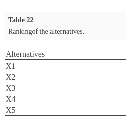 $X1>X3>X2>X5>X4$. Table