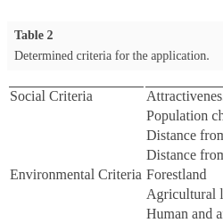 The contractors agreed to use a scientific method to determine the most appropriate site from the alternate locations in order to obtain the approval of the residential. They formed an academicians’ committee composed of 4 people that would carry out the application. Since the problem has too many criteria and alternatives, the committee has decided to use some MCDM methods including our integrated methodology for the solution of this problem. In our integrated methodology, the weights of the criteria are determined by hesitant fuzzy AHP and then, the proposed hesitant fuzzy CODAS method is applied to obtain the best residential construction site. The determined criteria for implementation are given in Table
