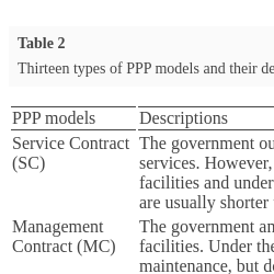 2.2 Risk Factors and PPP Models