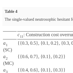 | ${a_{11}}$ (ET) | $\{\{0.5\},\{0.3,0.4\},\{0.2\}\}$ | $\{\{0.4,0.6\},\{0.3,0.4\},\{0.1,0.3\}\}$ | $\{\{0.3,0.6\},\{0.4,0.5\},\{0.2\}\}$ |