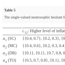 | ${a_{4}}$ (TO) | $\{\{0.1,0.4\},\{0.5\},\{0.6\}\}$ | $\{\{0.7,0.8\},\{0.1\},\{0.2\}\}$ | $\{\{0.4,0.6\},\{0.2,0.3\},\{0.1,0.2\}\}$ | $\{\{0.6\},\{0.2,0.4\},\{0.3\}\}$ |