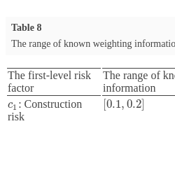 | The first-level risk factor | The range of known weighting information | The second-level risk factor | The range of known weighting information |