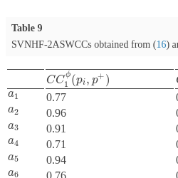 | Ranking using geometric mean based SVNHF-2ASWCC | ${a_{9}}\succ {a_{13}}\succ {a_{2}}\succ {a_{8}}\succ {a_{5}}\succ {a_{3}}\succ {a_{10}}\succ {a_{6}}\succ {a_{7}}\succ {a_{4}}\succ {a_{1}}\succ {a_{11}}\succ {a_{12}}$ | ||