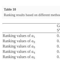 | Ranking values of ${a_{10}}$ | 0.488 | 0.494 | 0.658 |